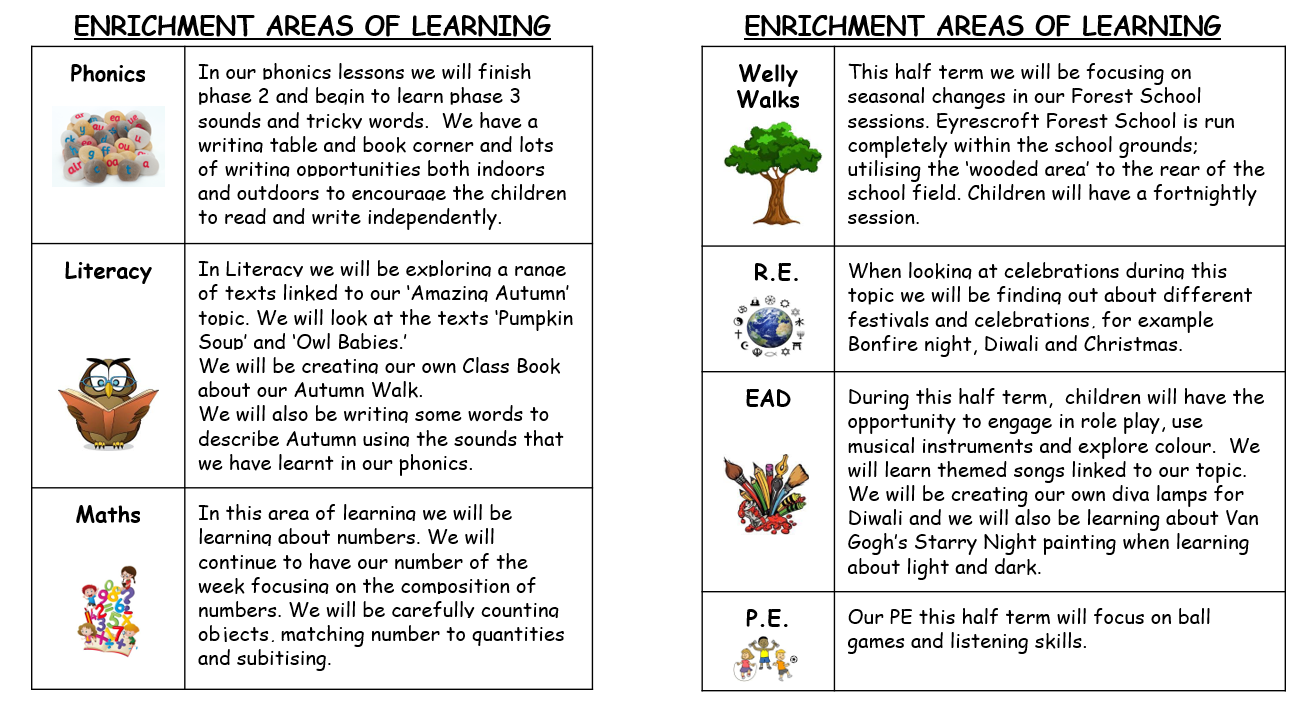 Please click on the links below to download the class curriculum half term information sheets:
